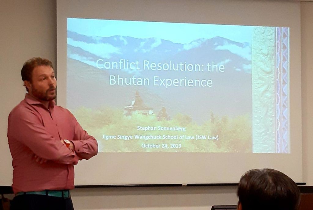 On 24 October 2019, members of the Society of Mediation Professionals (Singapore) were privileged to learn about the Bhutanese model of conflict resolution from Assistant Professor Stephan Sonnenberg, who teaches at the Jigme Singye Wangchuck School of Law.