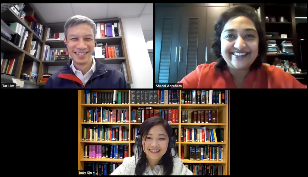 On the evening of 25 November 2020, SMP was privileged to hear from two leading mediators from the region, Ms Shanti Abraham (from Malaysia) (“Shanti”) and Ms Jody Sin (from Hong Kong) (“Jody”) who shared on recent developments in their respective countries, in a wide-ranging discussion moderated by SMP Chairman Lim Tat.